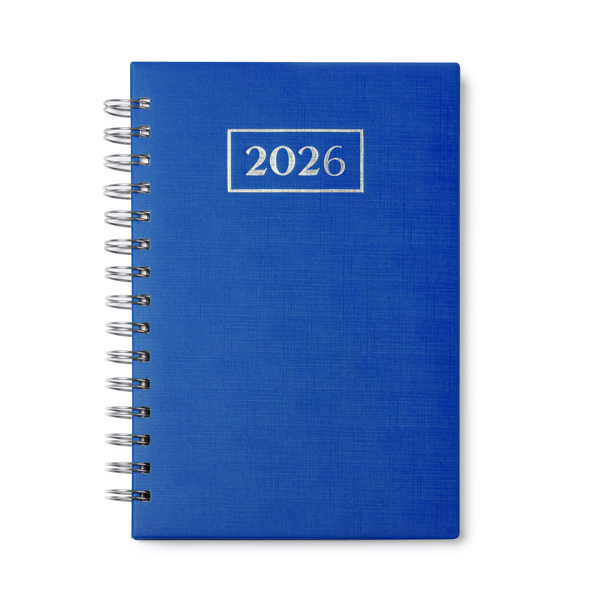 Agenda con anillas tamaño A5. Tapas de PU acolchadas con grabado bajo relieve. 348 páginas más 4 páginas con mapas. Gramaje del papel 60gsm. Papel interior de color blanco. Diseño página día con esquinas troqueladas.