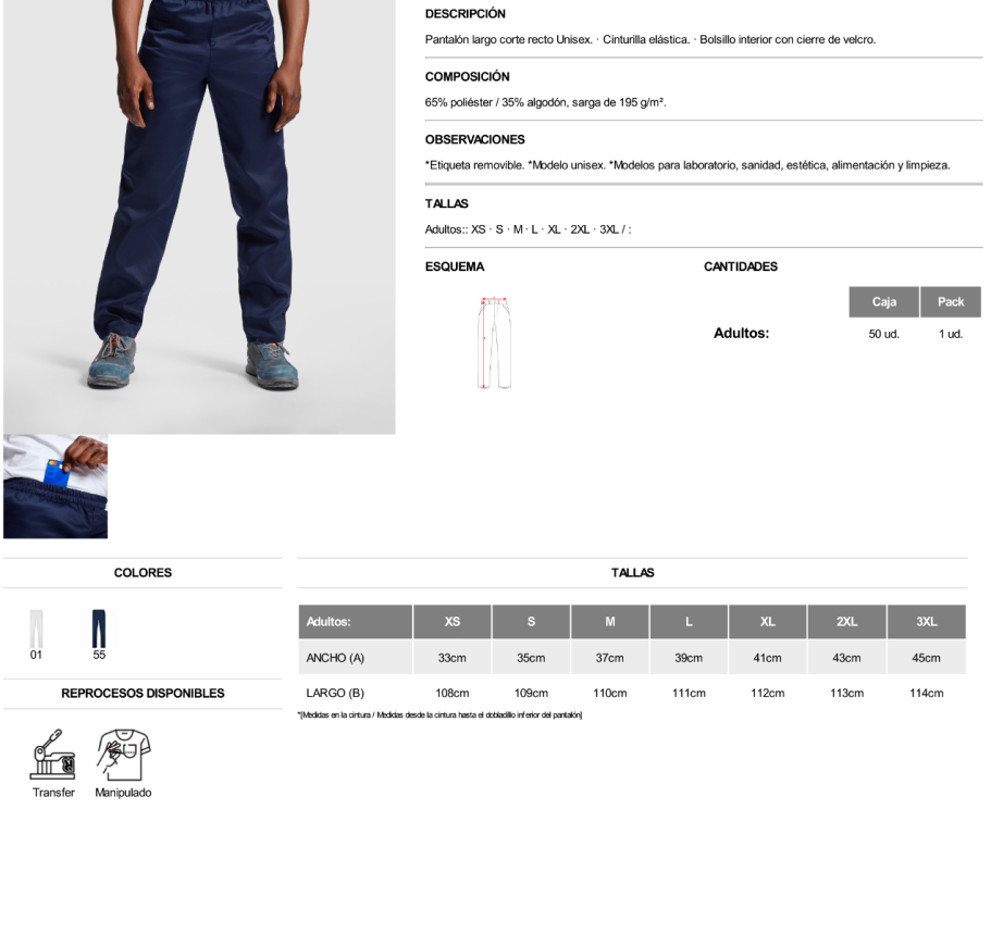 *Etiqueta removible. *Modelo unisex. *Modelos para laboratorio, sanidad, estética, alimentación y limpieza.