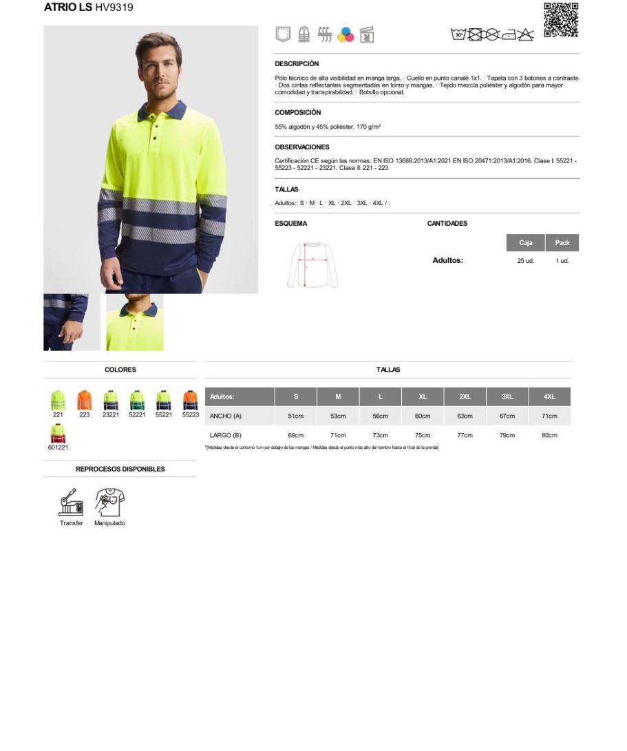 Certificación CE según las normas: EN ISO 13688:2013/A1:2021 EN ISO 20471:2013/A1:2016. Clase I: 55221 - 55223 - 52221 - 23221. Clase II: 221 - 223