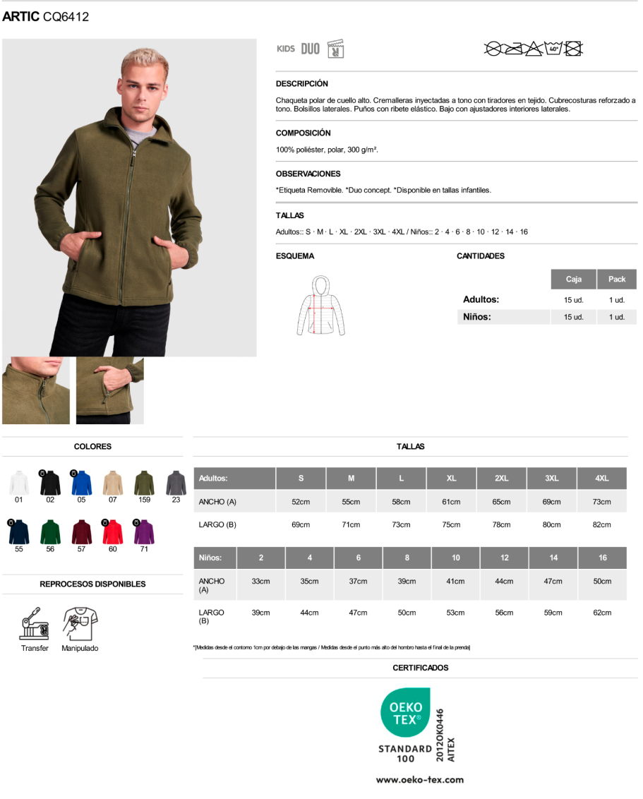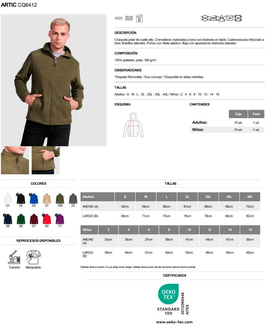 Material: 100% poliéster, polar, 300 g/m².