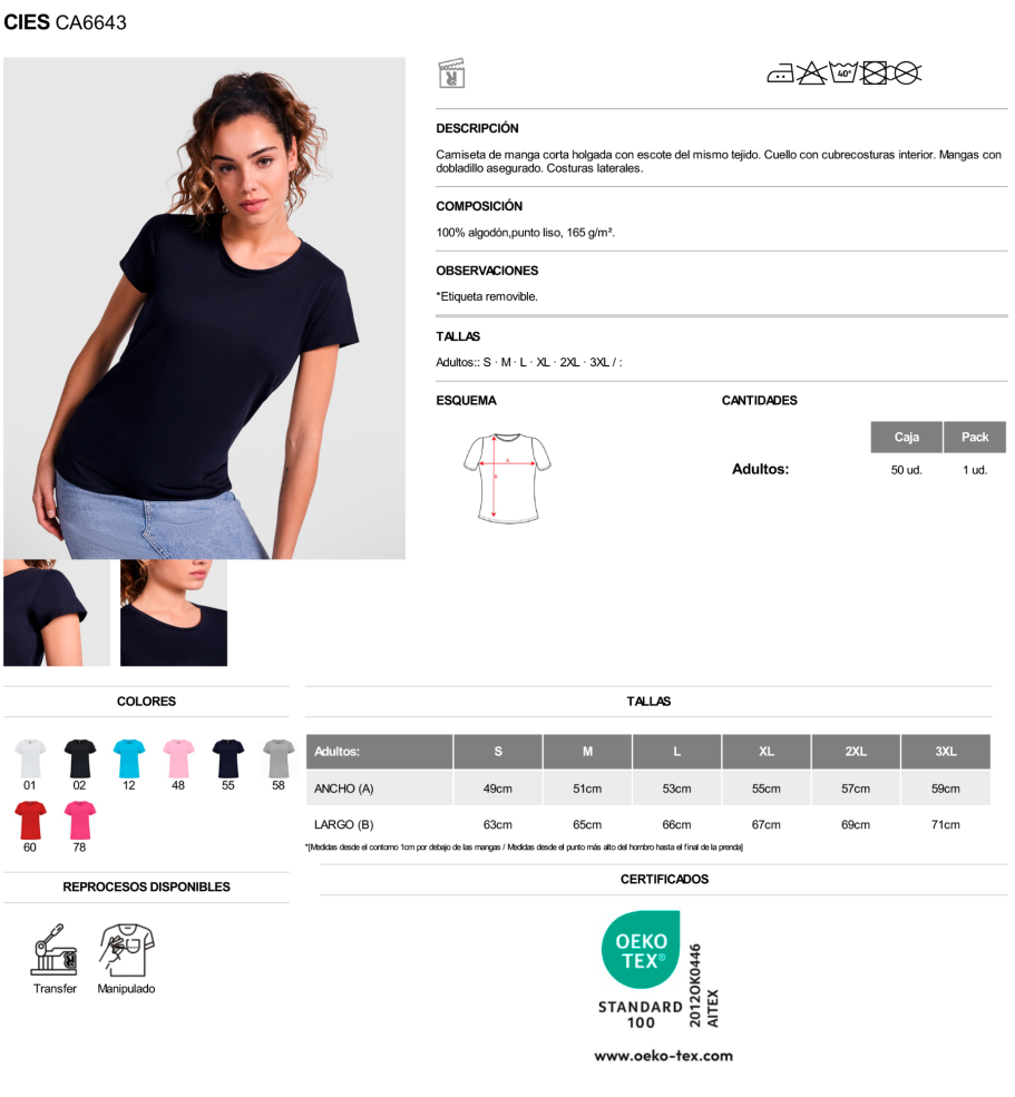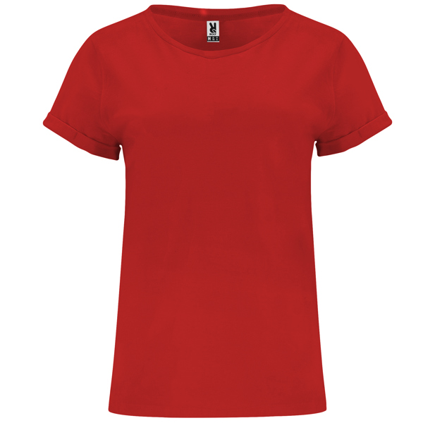 Camiseta de manga corta ligeramente entallada en cintura. Cuello redondo del mismo tejido. Cubrecosturas en cuello del mismo tejido. Detalle de costuras de refuerzo en dobladillos.