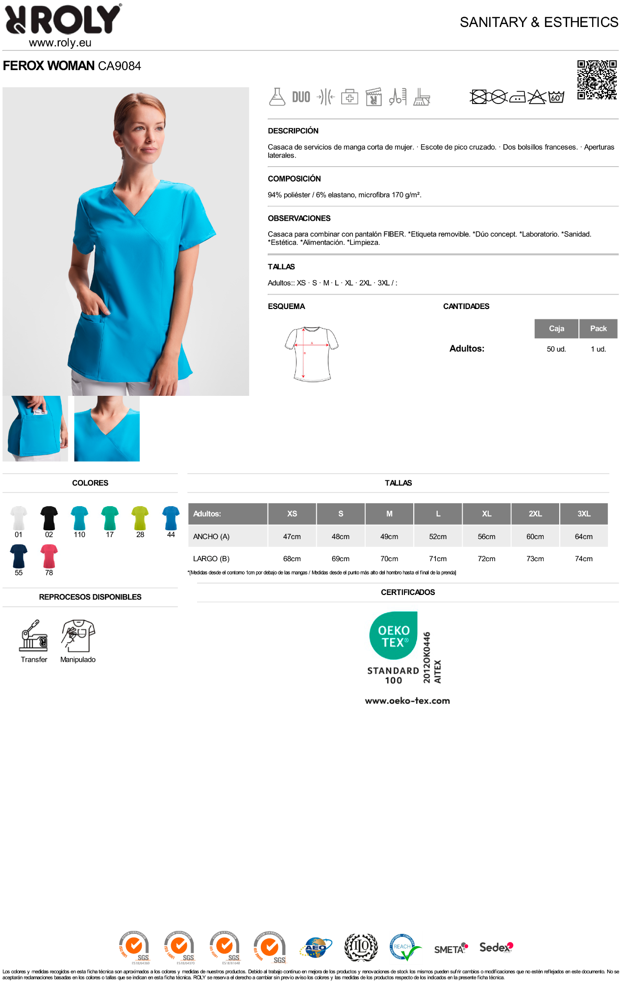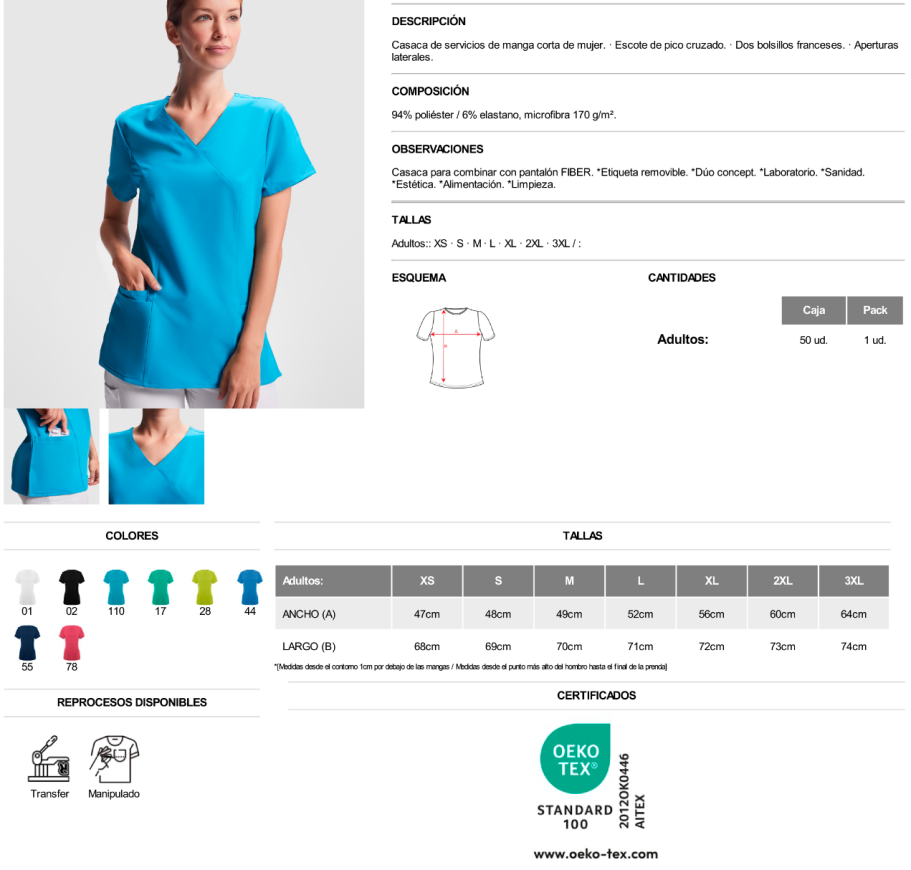 Casaca para combinar con pantalón FIBER. *Etiqueta removible. *Dúo concept. *Laboratorio. *Sanidad. *Estética. *Alimentación. *Limpieza.