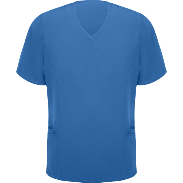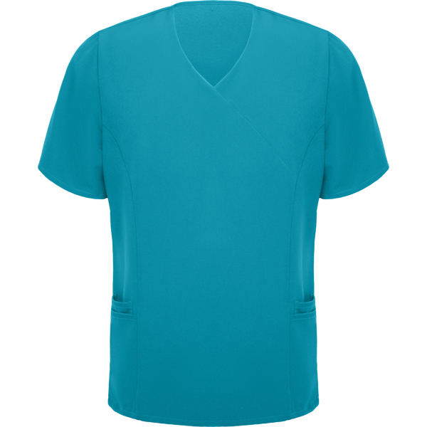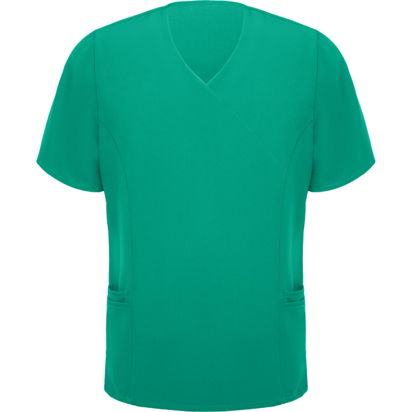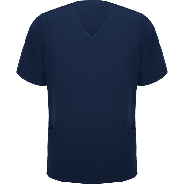 Casaca de servicios de manga corta. · Escote de pico cruzado. · Dos bolsillos franceses. · Aperturas laterales.