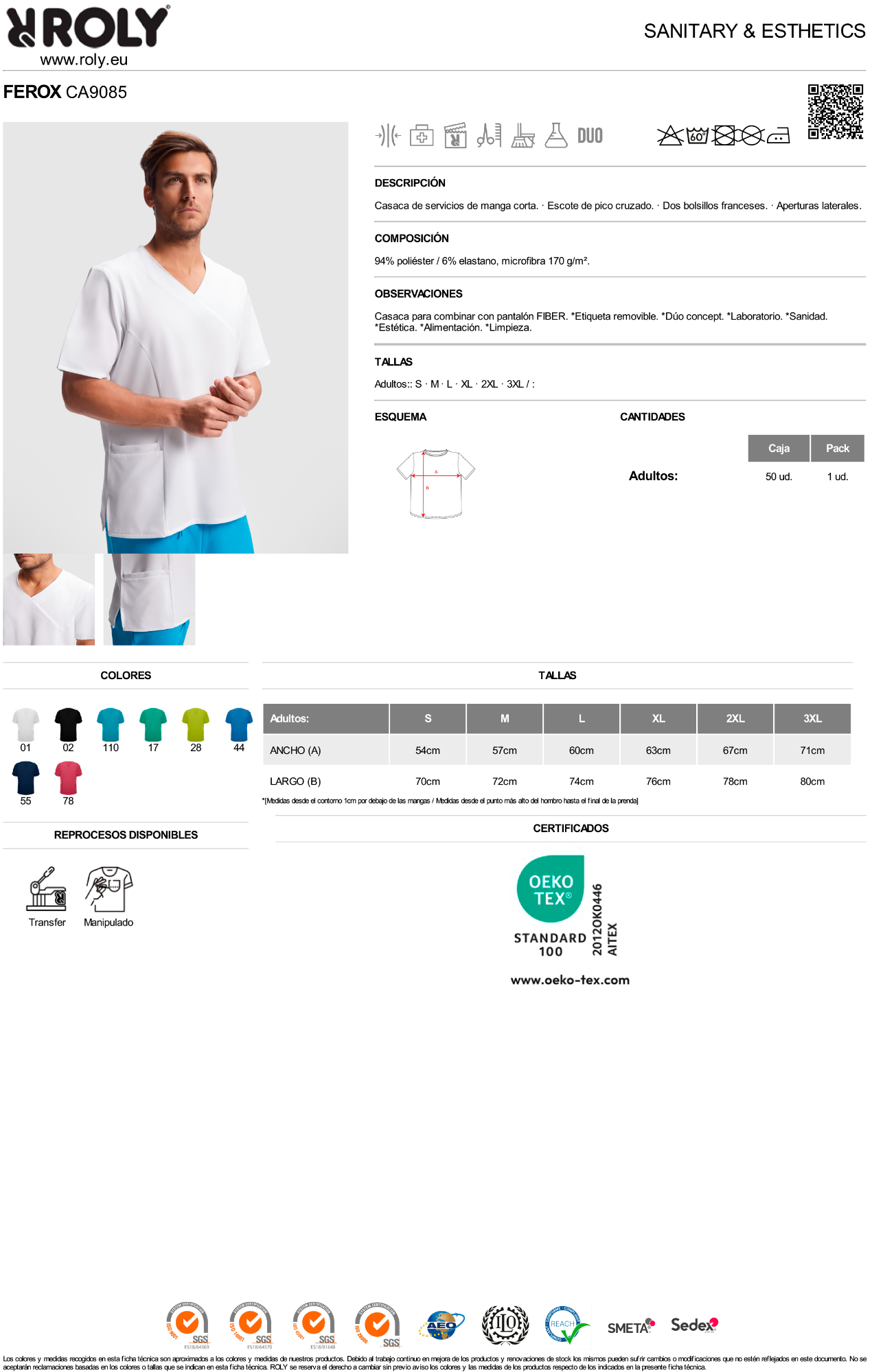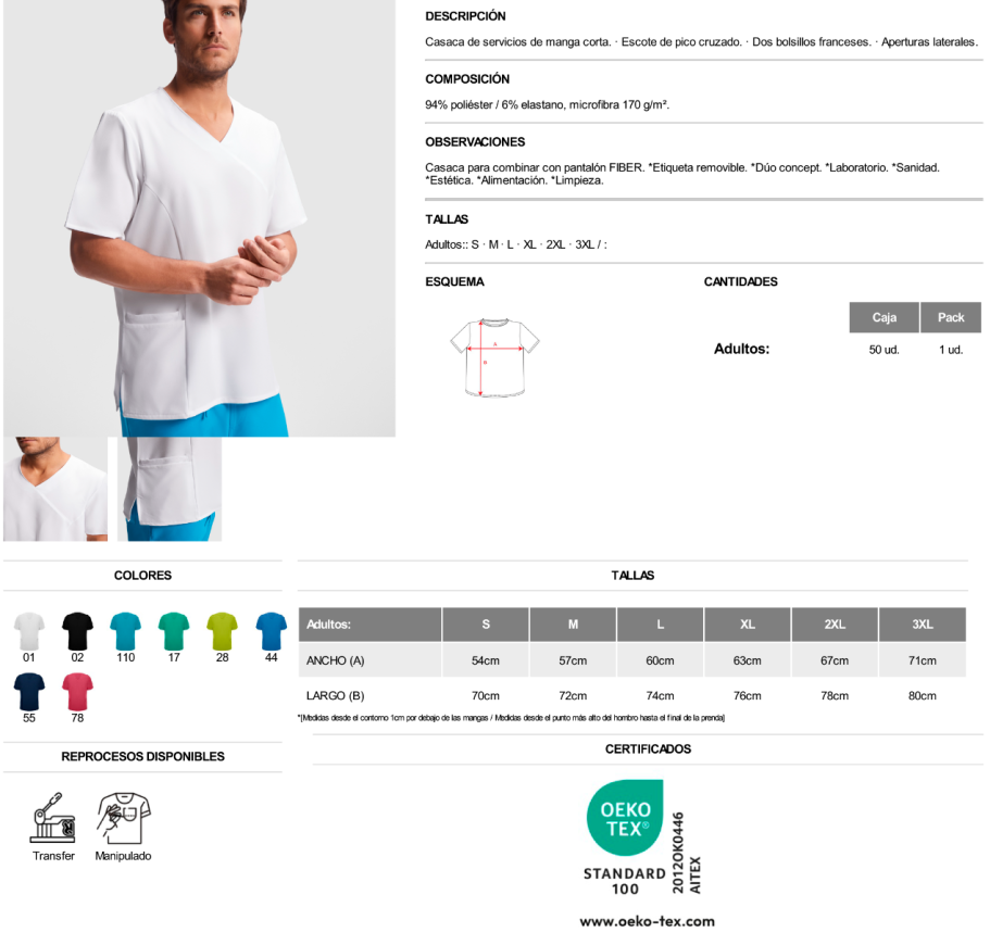 Casaca para combinar con pantalón FIBER. *Etiqueta removible. *Dúo concept. *Laboratorio. *Sanidad. *Estética. *Alimentación. *Limpieza.