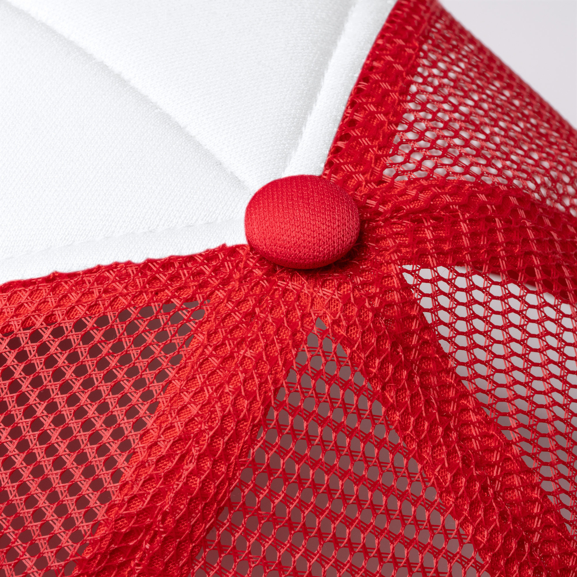 Gorra de políester de 5 paneles con panel frontal acolchado en color blanco. Con parte trasera con rejilla y cierre ajustable.