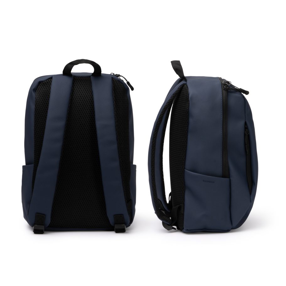Mochila elaborada en PU Leather de tacto suave. En su compartimento principal incopora bolsillo especial para transporte de dipositivos como Tablets. Con dos bolsillos laterales para transportar otros enseres como botellas y un compartimento frontal con cremallera oculta. Asas acolchadas ajustables y cremalleras en negro.