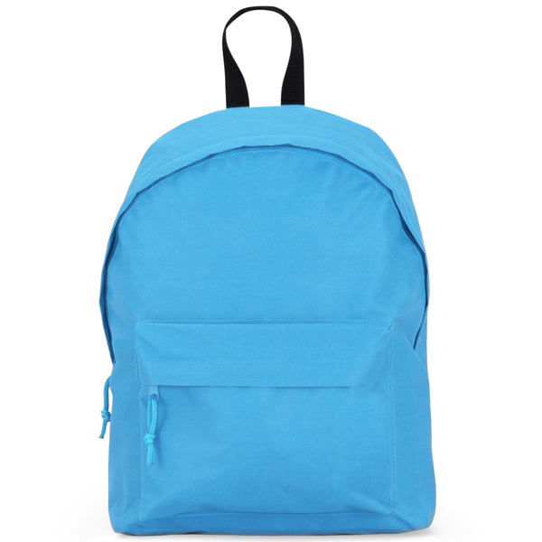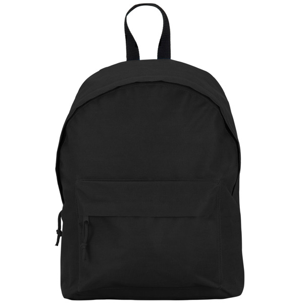 Mochila básica elaborada en poliéster 600D, tejido resistente. Con doble asa para hombro y asa de mano a contraste. Cuenta con dos compartimentos, uno principal para mayor almacenamiento y otro frontal para pequeños enseres, con cremalleras, tapetas y tiradores a tono.