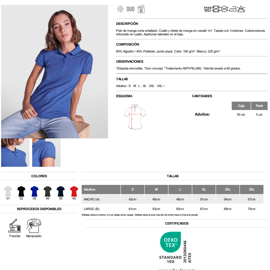 Material: 60% Algodón / 40% Poliéster, punto piqué.