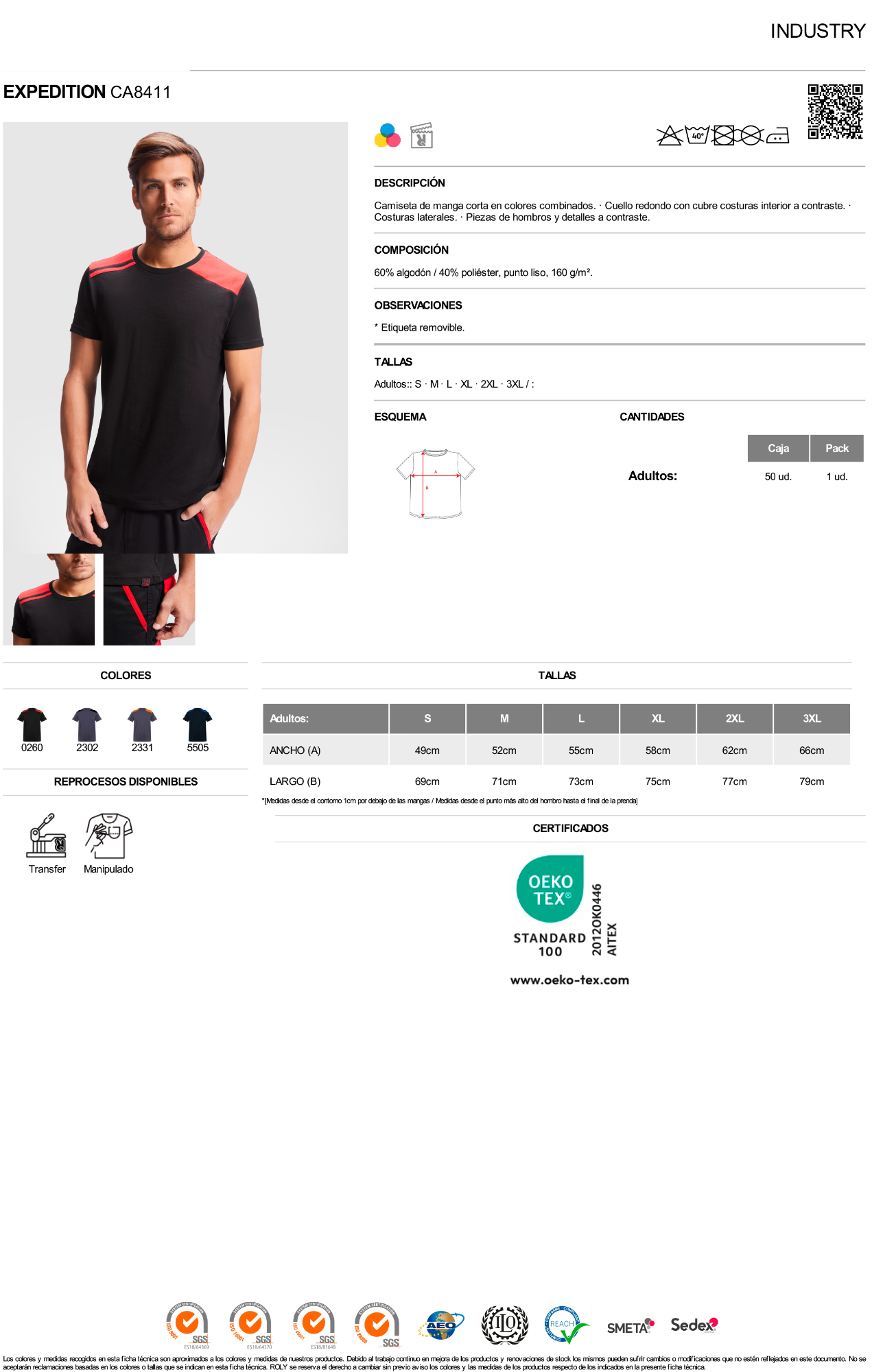 Material: 60% algodón / 40% poliéster, punto liso, 160 g/m².