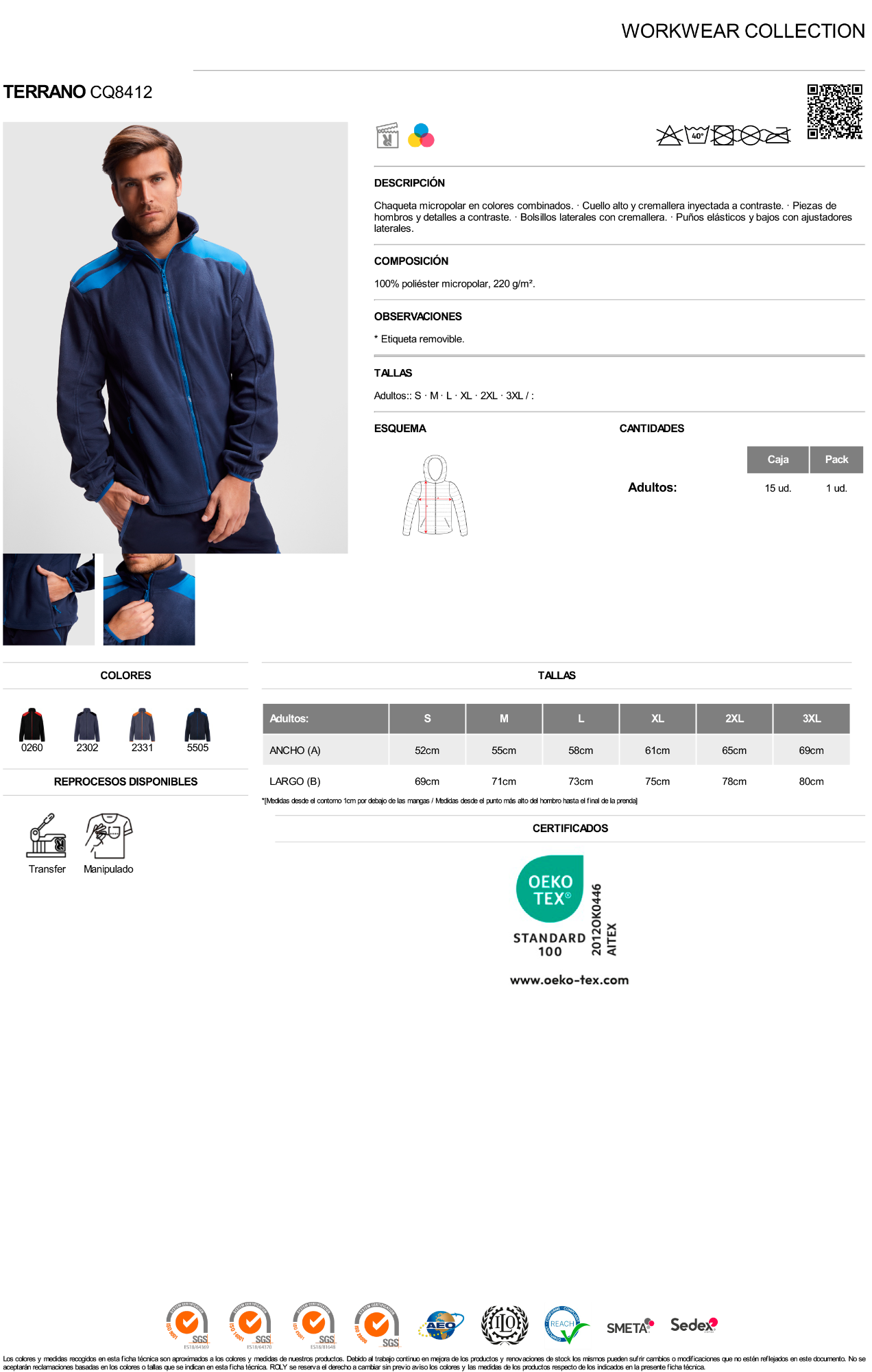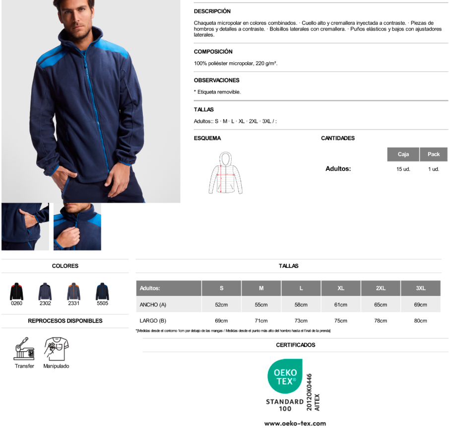Chaqueta micropolar en colores combinados. · Cuello alto y cremallera inyectada a contraste. · Piezas de hombros y detalles a contraste. · Bolsillos laterales con cremallera. · Puños elásticos y bajos con ajustadores laterales.