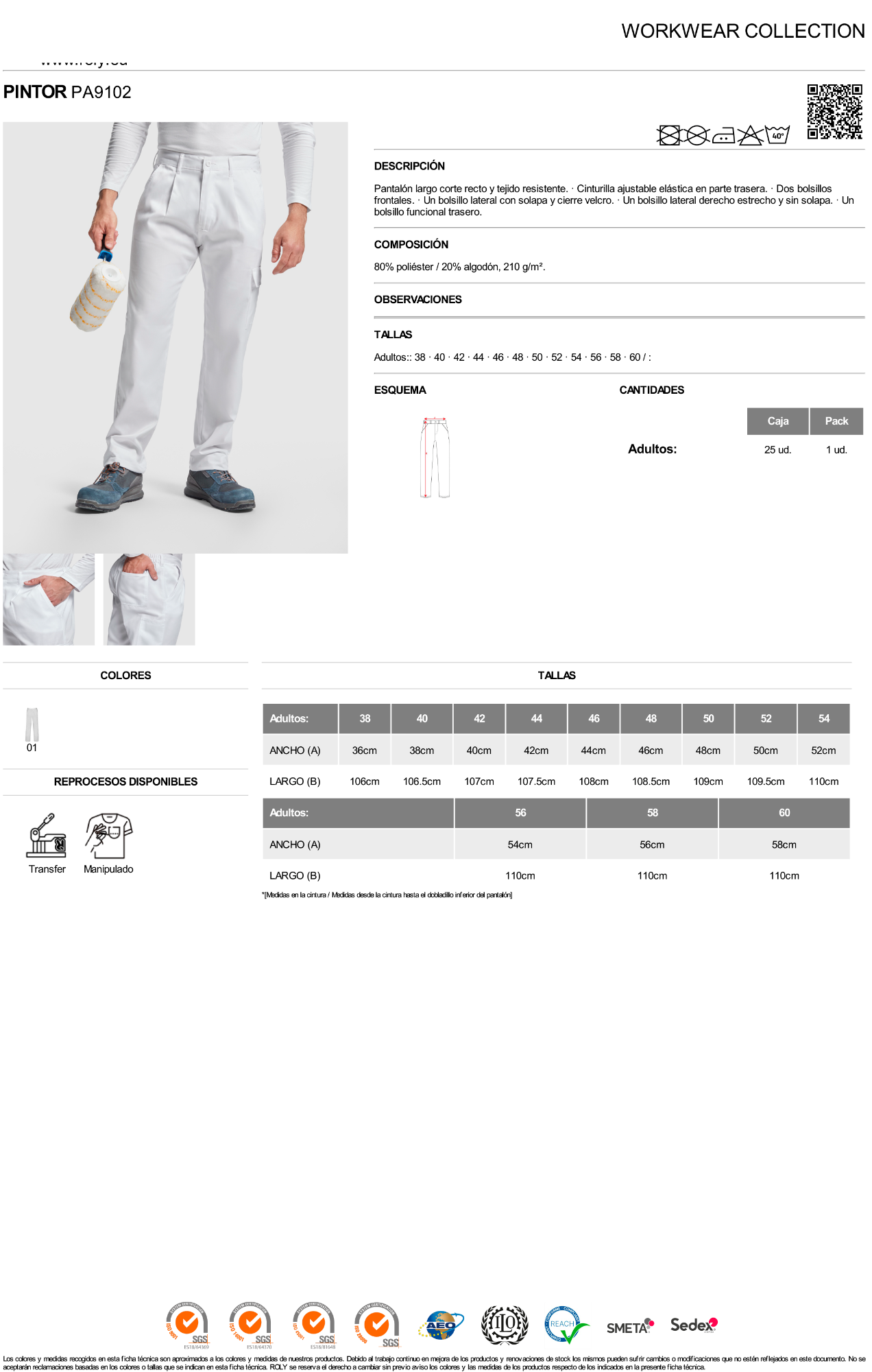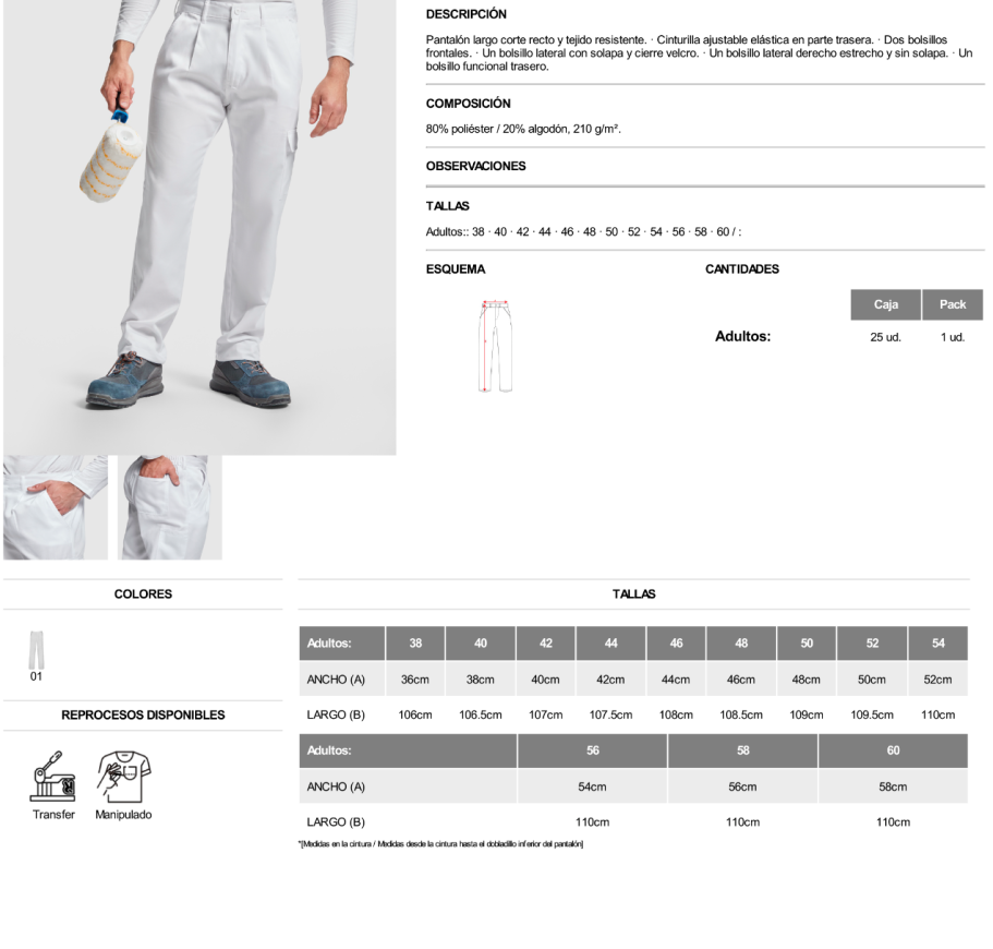 Material: 80% poliéster / 20% algodón, 210 g/m².