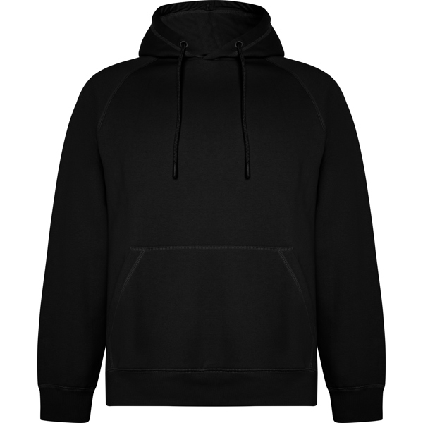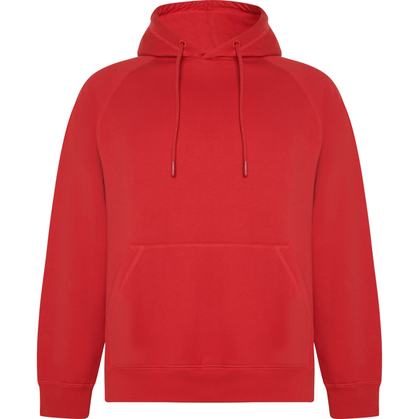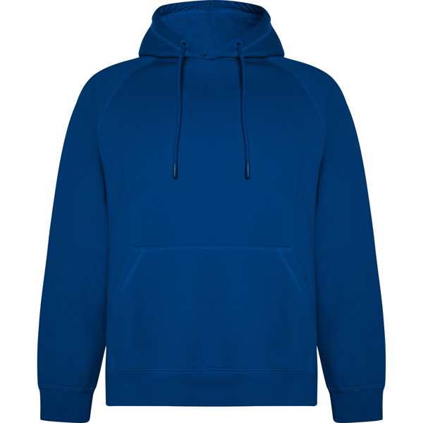 Sudadera con capucha Unisex en Algodón Orgánico Peinado y Poliéster Reciclado. Bolsillo Canguro. Capucha forrada de punto liso y cordones redondos ajustables, ojales bordados. Cuello puños y cinturilla de punto canalé 2x1.